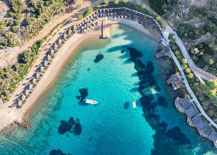 Situato su una spiaggia privata, Caresse, A Luxury Collection Resort & Spa, Bodrum, un hotel confortevole a 5 stelle, si trova a 25 minuti a piedi dal Mulino a vento.